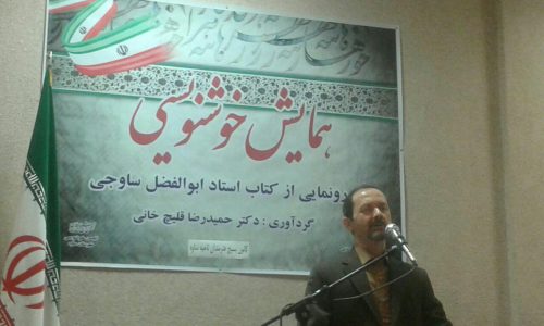 اسماعیلی رئیس انجمن خوشنویسان شهرستان ساوه ضمن نکوداشت از دکتر حمیدرضا قلیچ خانی استاد بین المللی جهت گردآوری و نوشتن کتاب ابوالفضل ساوجی تقدیر نمود