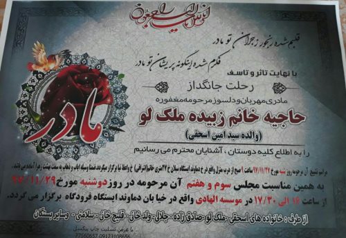 مراسم ختم مرحومین جوشقانیان در اسفند ماه۹۷ (با عرض تسلیت به بازماندگان )